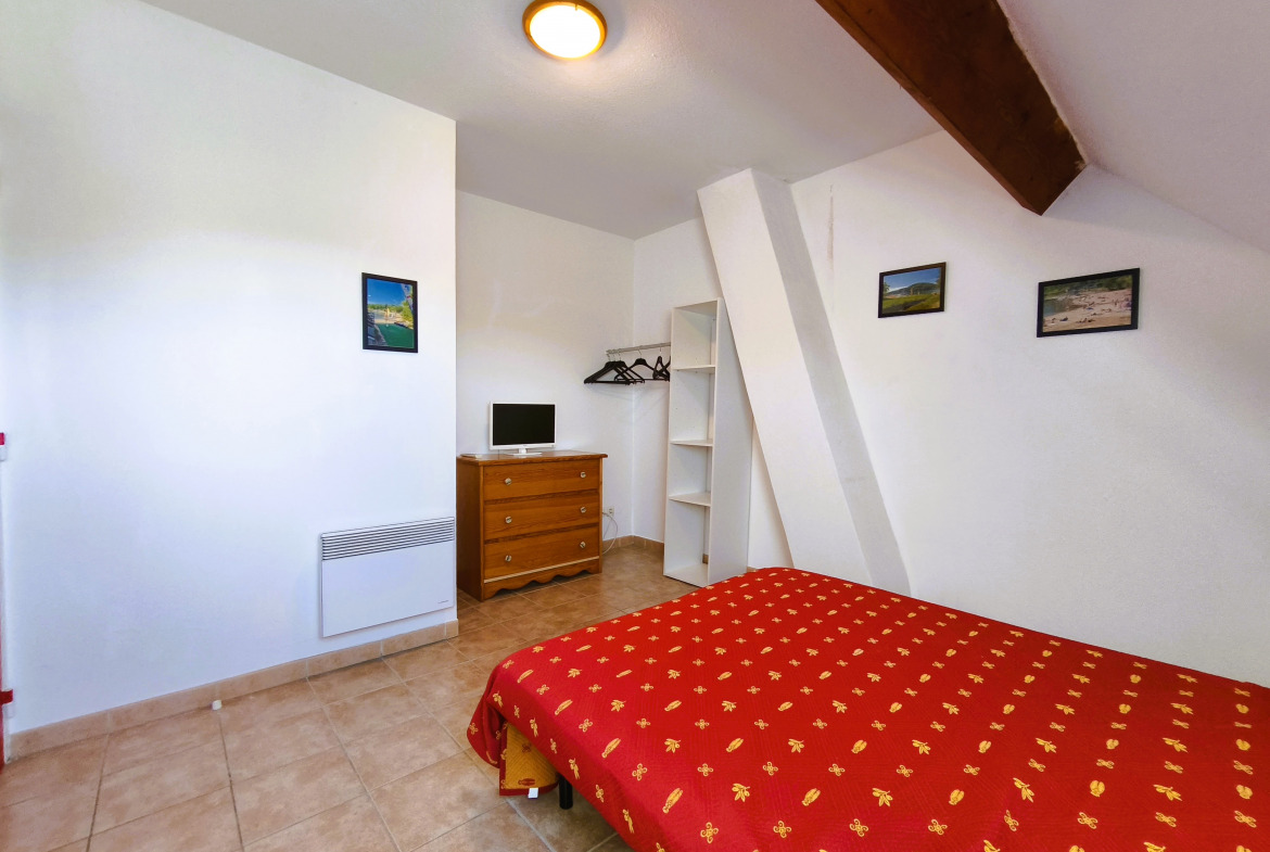 -À l’étage : Deux chambres confortables ainsi qu’une salle de bains offrent un espace nuit fonctionnel et bien agencé.