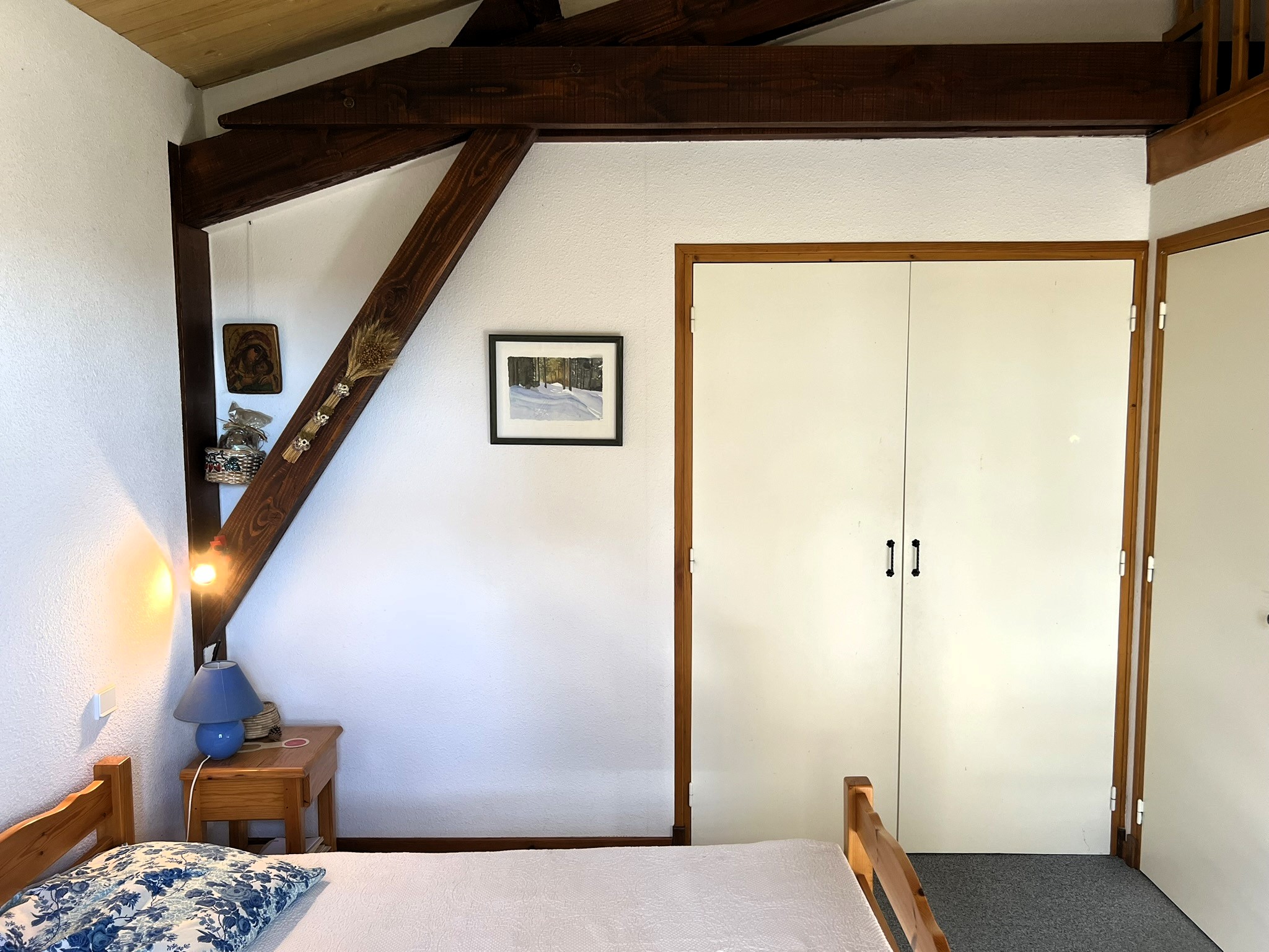 -Au premier étage: un couloir distribuant deux chambres avec placard intégré et mezzanine, une salle de bain et un WC