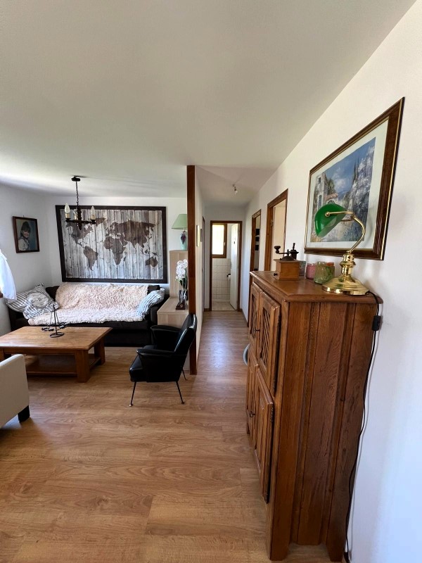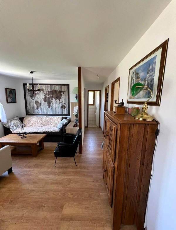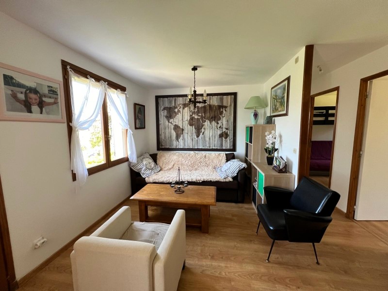 -En rez-de-jardin : un séjour lumineux avec cheminée, une cuisine équipée, deux chambres et une salle d’eau, une grande terrasse arborée idéale pour profiter de l’extérieur.