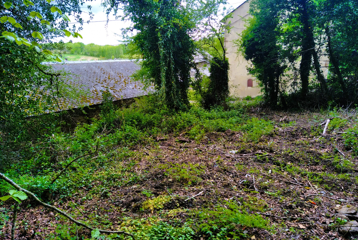 Une belle grange en pierres en bordure de chemin, mitoyenne d’un coté, raccordée au réseau d’eau, d’électricité et son terrain non attenant de l’autre coté du chemin.