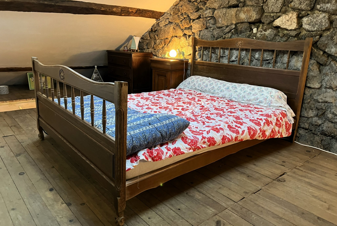 La maison en pierre, sur deux niveaux avec comble, d’une surface habitable de 45m², se compose: