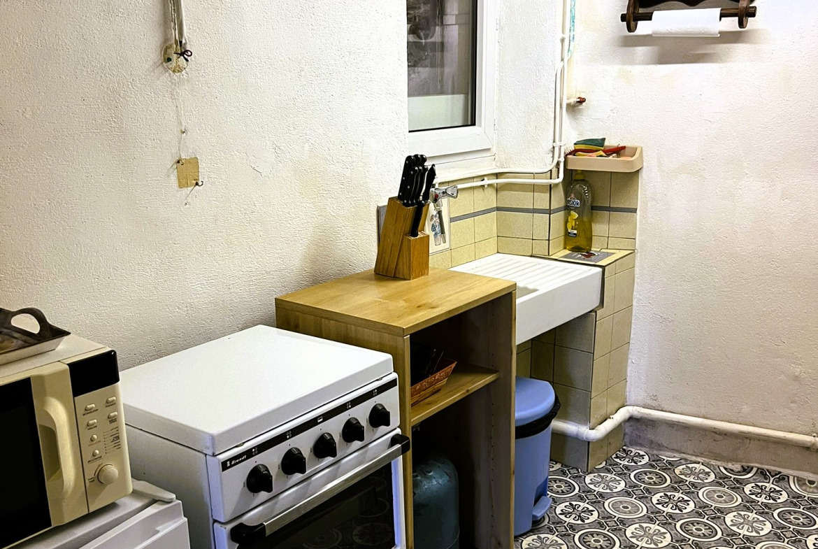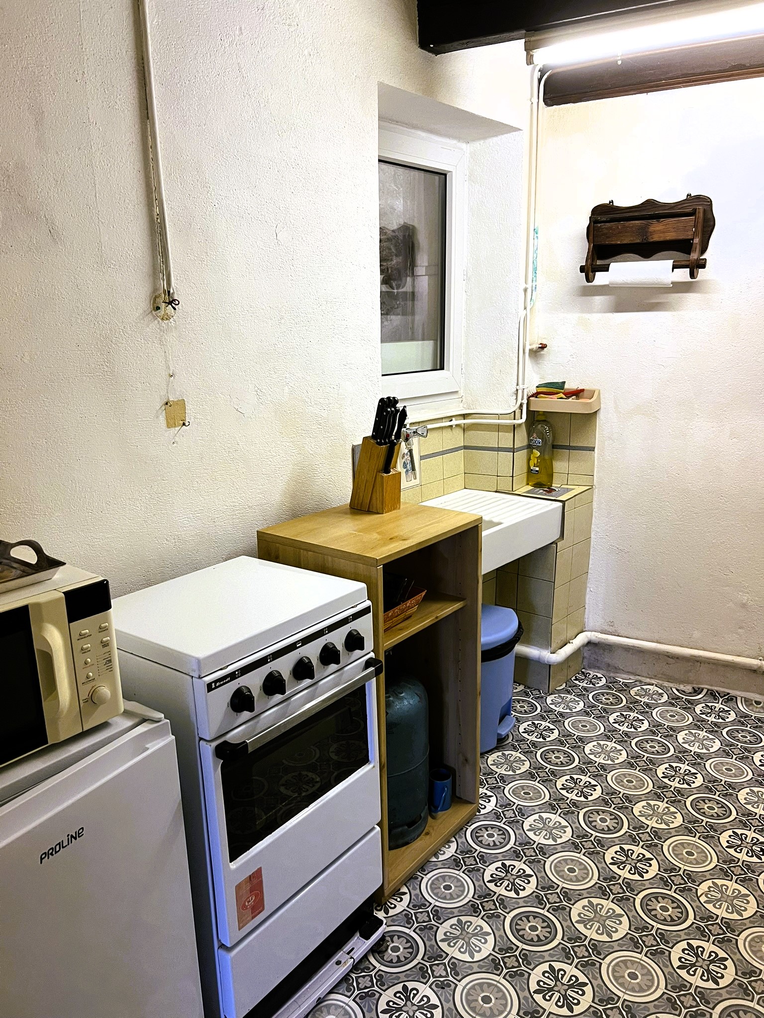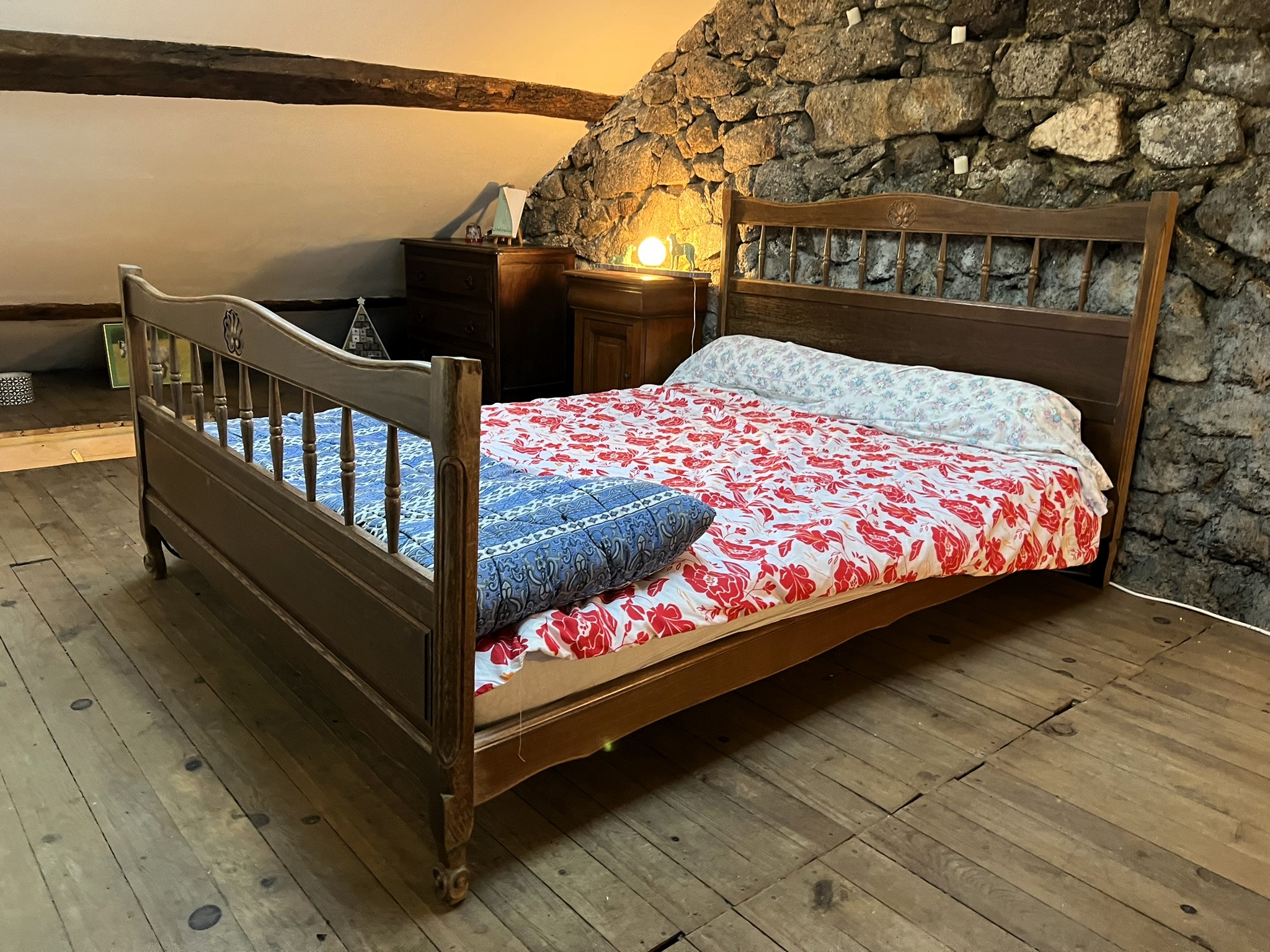 -Sous le toit: un espace couchage -A l’extérieur: un jardinet avec une sortie sur la rue, idéal pour se délasser et profiter entre amis ou en famille à l’ombre de l’arbre